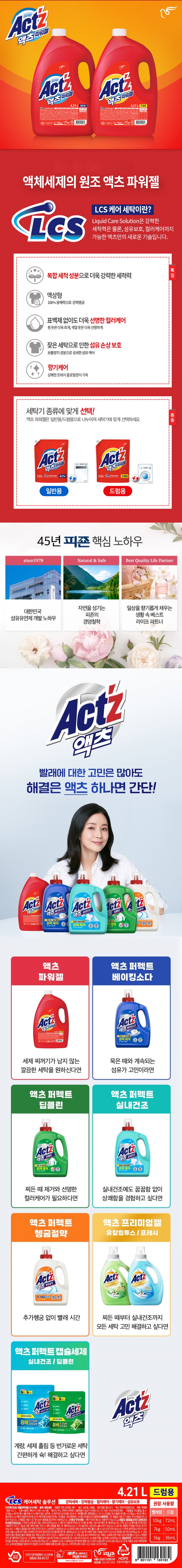 ★액츠★ 파워젤 드럼용 액상세제 본품, 4.21L, 4개