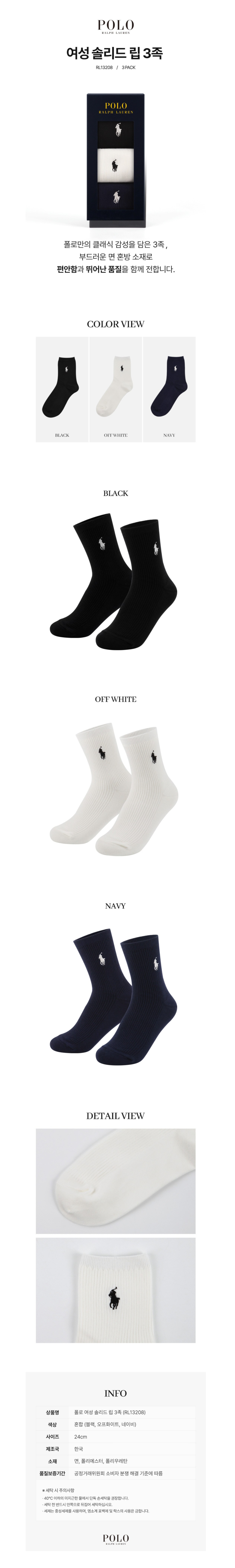 ★폴로랄프로렌★ 여성용 솔리드립 양말 3종 선물세트
