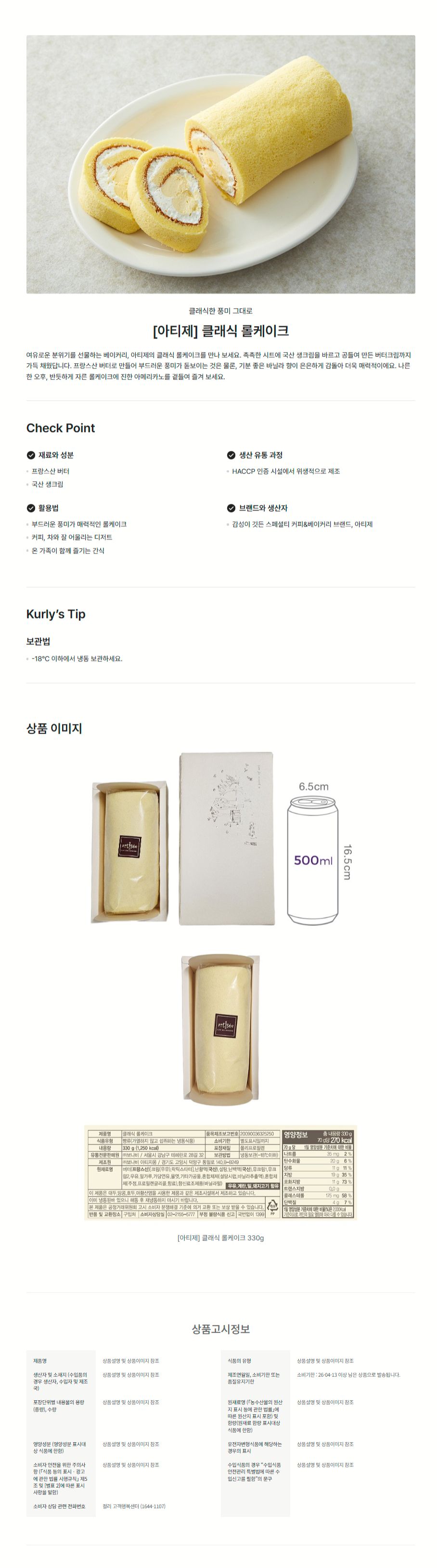 ★컬리★ 아티제 클래식 롤 케이크 330g