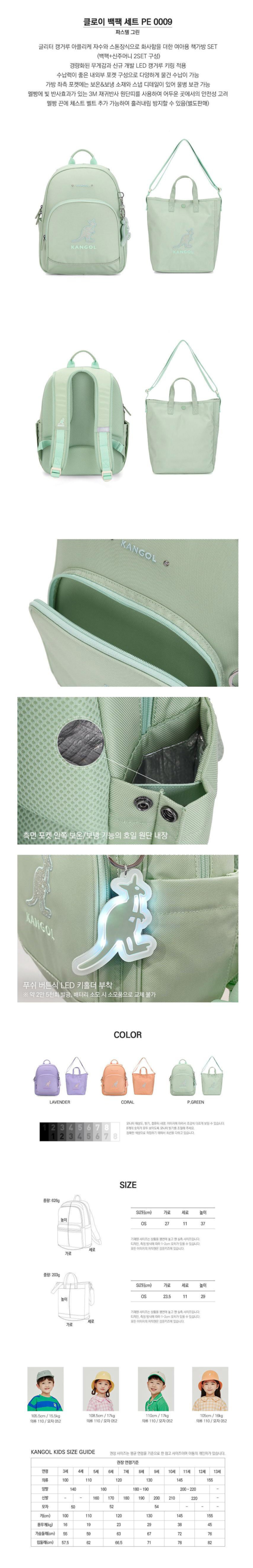 ★캉골키즈★ 아동용 클로이 책가방 세트 PE 0009