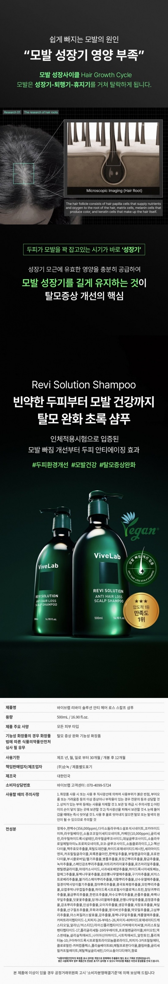 ★바이브랩★리바이 솔루션 탈모샴푸 ( 500ml x 2개 )