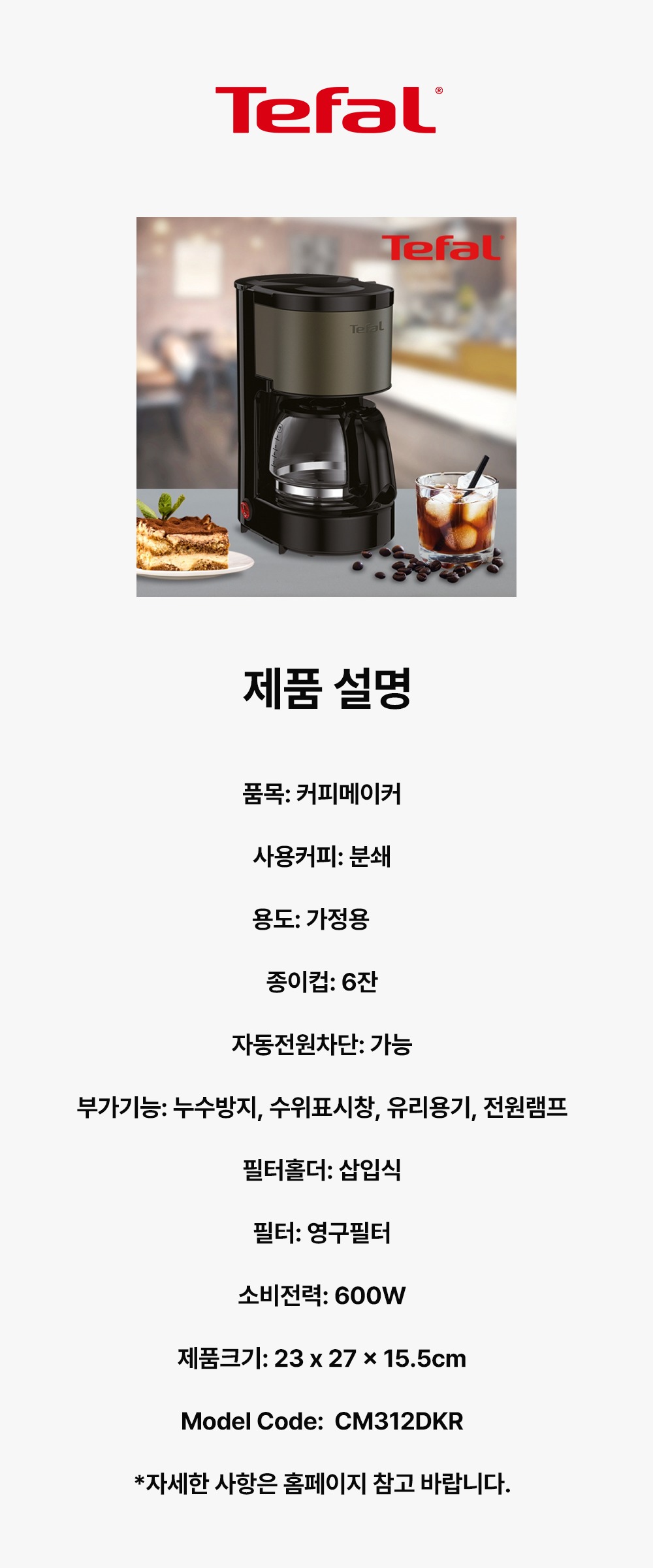 ★테팔★ 커피메이커 컬러터치 ( CM312DKR )
