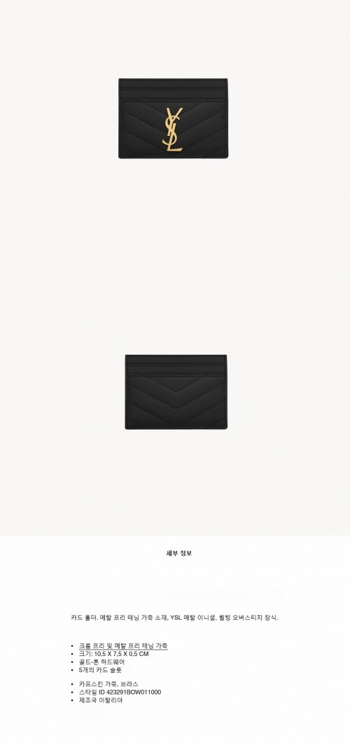 ★SAINTLAURENT★ 그랑 드 뿌드르 엠보스드 가죽 소재의 CASSANDRE MATELASSE 카드 케이스