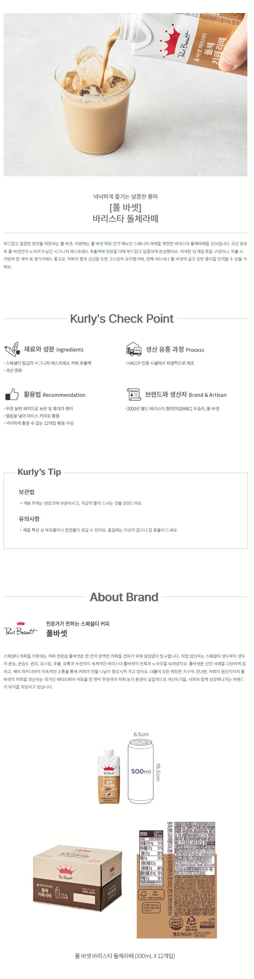 ★컬리★ 폴 바셋 바리스타 돌체라떼 (330mL X 12개)