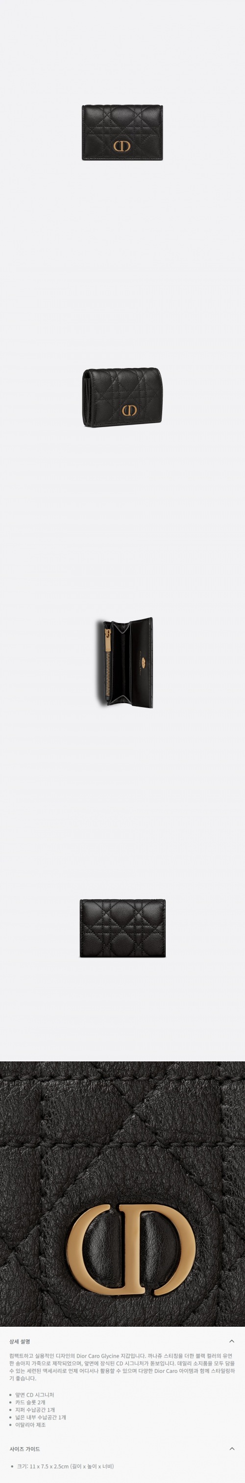★DIOR★ Caro Glycine 지갑 블랙 서플 까나쥬 송아지 가죽
