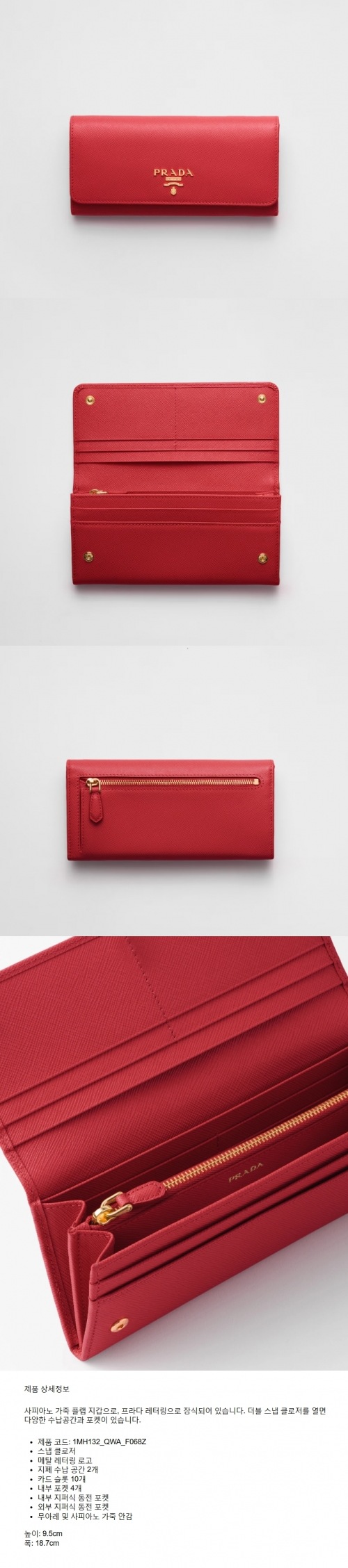 ★PRADA★ 사피아노 가죽 장지갑 파이어 엔진 레드