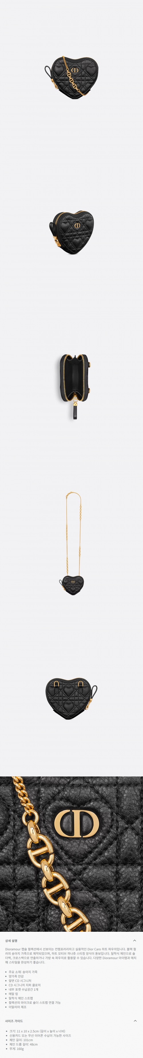★DIOR★ Dioramour Dior Caro 체인 하트 파우치 블랙 까나쥬 송아지 가죽 & 하트 모티브