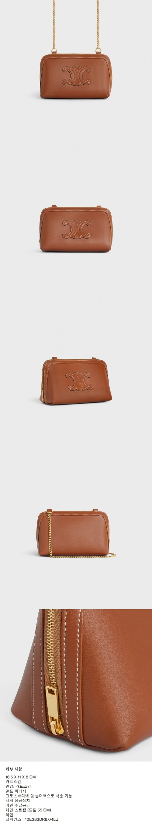 ★CELINE★ 퀴르 트리옹프 체인 클러치 - 부드러운 카프스킨 탠