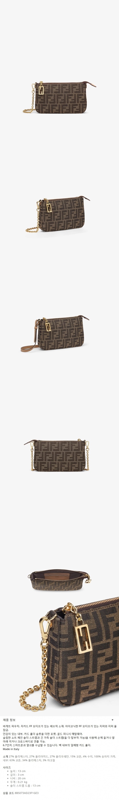★FENDI★ 바게트 파우치 브라운 자카드 FF 패브릭 체인 클러치