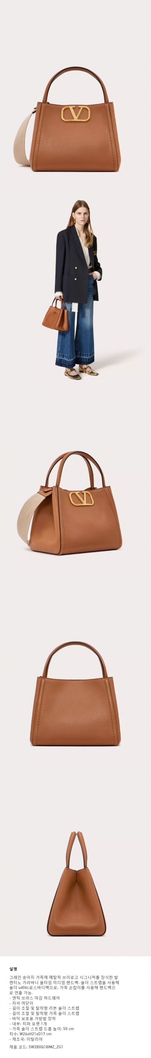 ★VALENTINO★ 올타임 그레인 카프스킨 미디엄 핸드백 아몬드