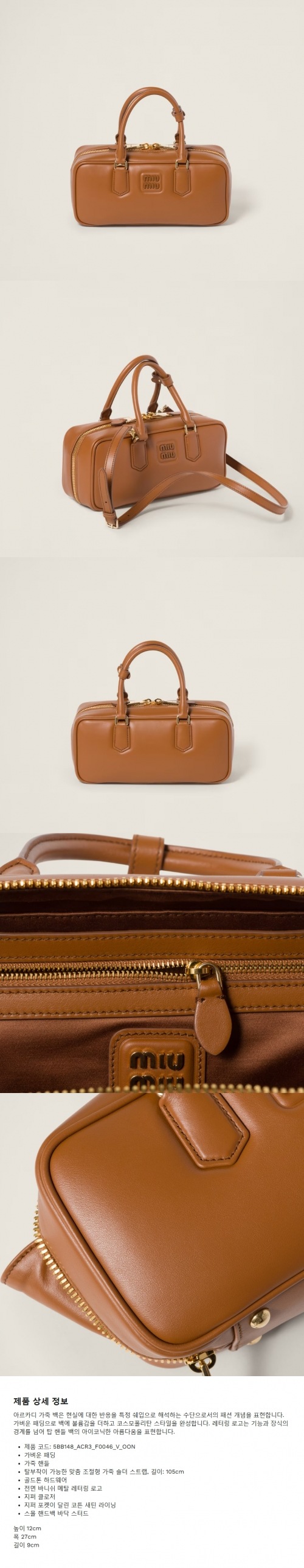 ★MIUMIU★아르카디 가죽 백 코냑
