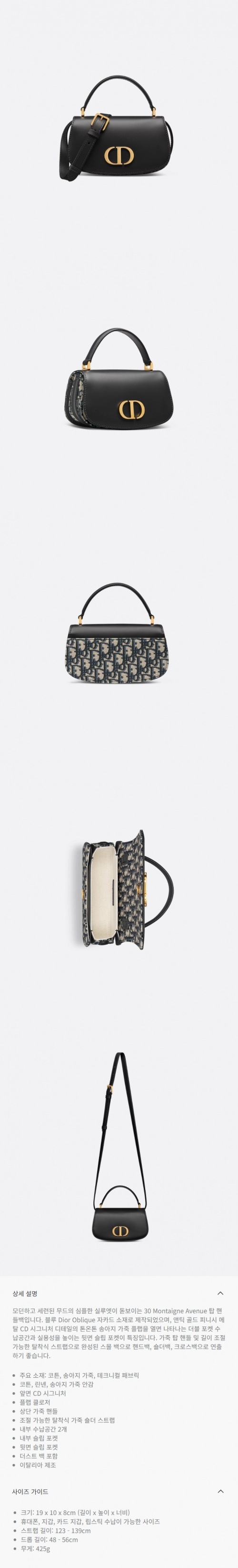 ★DIOR★ 30 Montaigne Avenue 스몰 탑 핸들백 블루 Dior Oblique 자카드 & 스무스 송아지 가죽