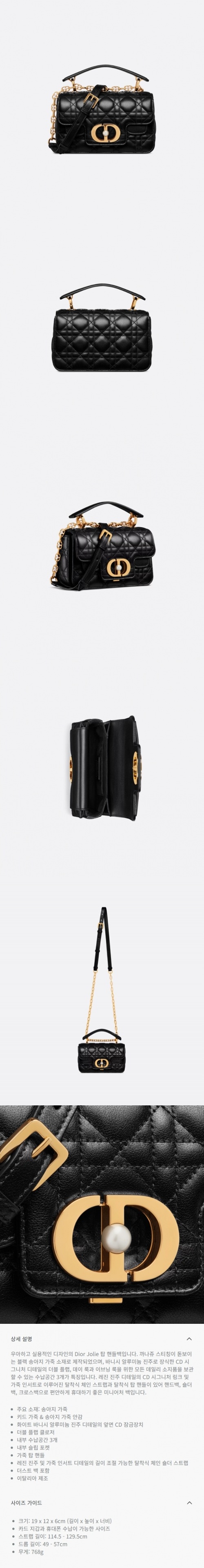 ★DIOR★Jolie 미니 탑 핸들백 블랙 까나쥬 송아지 가죽
